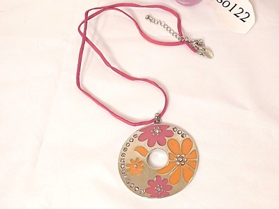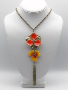 Enamel Flower Power Necklace With Tassel Rhinestones Gold Tone