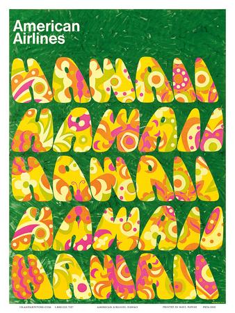 Hawaii American Airlines Psychedelic Flower Power Art Art