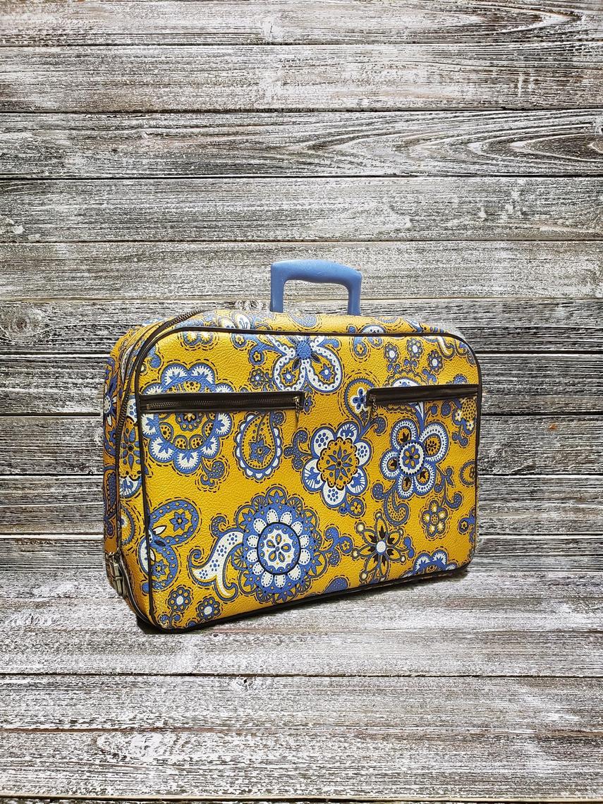Vintage Flower Power Paisley Suitcase Boho Hippie Chic 1960s