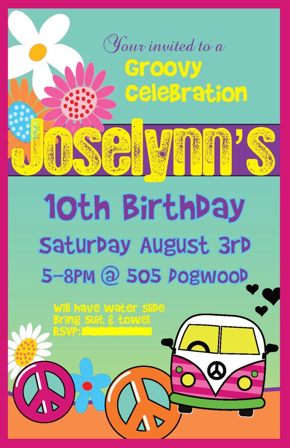 Groovy Peace Flower Power Birthday Invitation Digital Etsy