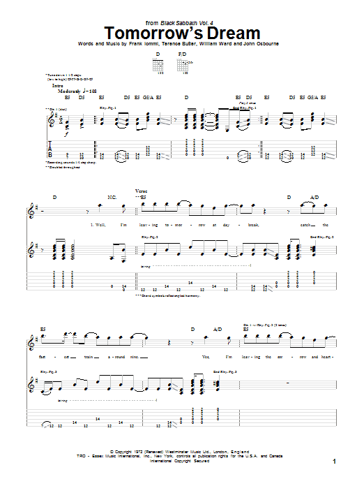 Black Sabbath Tomorrow S Dream At Stanton S Sheet Music