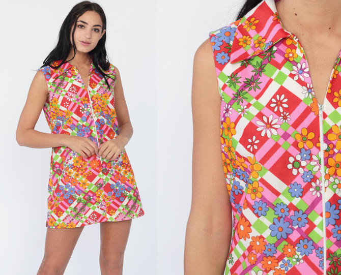 Flower Power Dress 70s Floral Mod Micro Mini Hippie Psychedelic