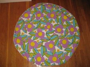 Vtg 1960s Purple Green Flower Power Round Tablecloth Floral Mod