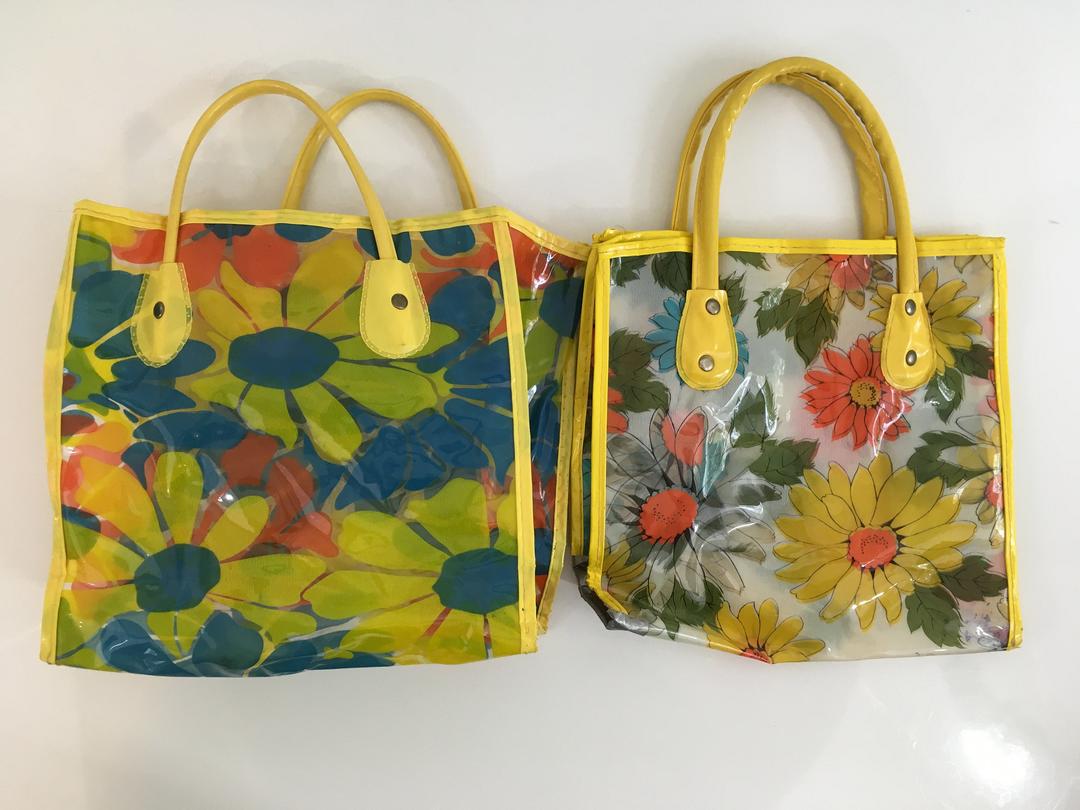 True Vintage 1960s Tote Bag Floral Set Of Two 2 Plastic 60s Mod