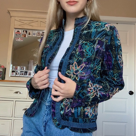 Vintage Tops 2k Vibes Trippy Embroidered Flower Power Jacket