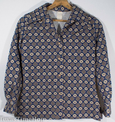 1960 S 70 S Shirt Vintage Flower Power Top Blazer Textured Boho