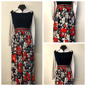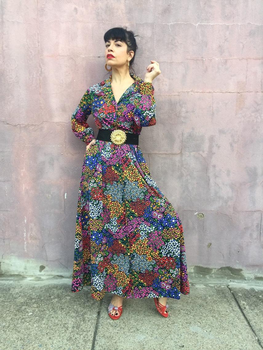 Vintage 60s 70s Maxi Dress Flower Power Size M Bichovintage