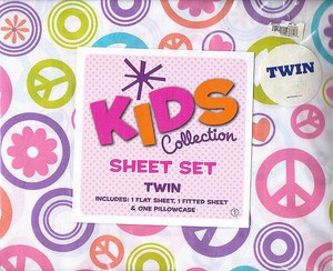 Kids Collection Sheet Set Twin Peace Signs Flower Power New In
