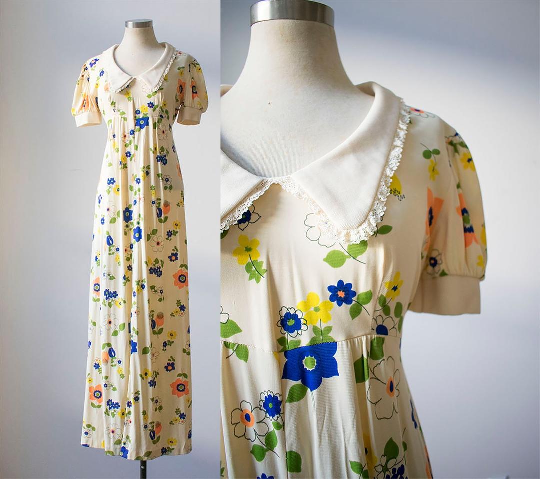 Vintage Original Early 1970s Dress White Floral Pointed Dagger Etsy