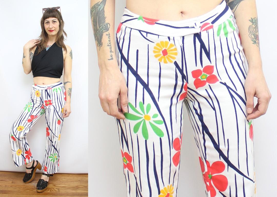 Vintage 60 39 S 70 39 S Groovy Floral Mid Waisted Cropped Pants
