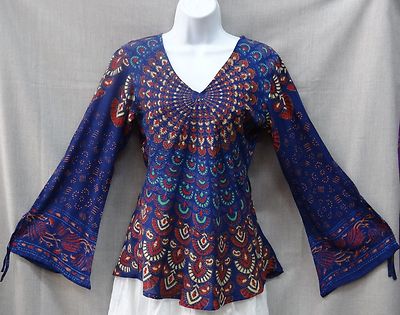 Indian Womens Ladies Flower Power Hippie Boho Shirt Top Rayon Blue