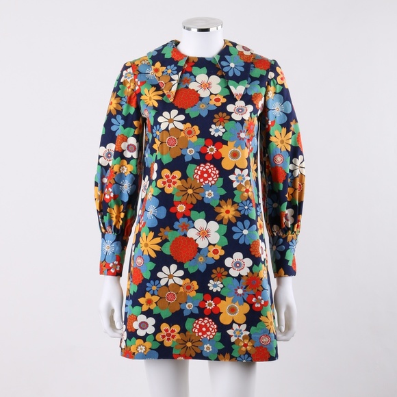 Flower Power Dress 70s Floral Mod Micro Mini Hippie Psychedelic