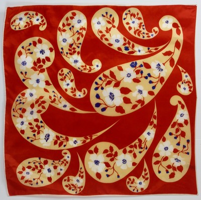 1960s Flower Power Scarf Made In Japan Red Beige Blue Paisley