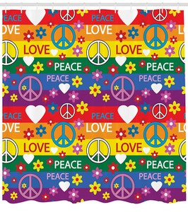Groovy Decorations Curtains Heart Peace Symbol Flower Power