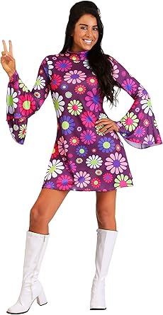 Adult 60 S Groovy Hippie Costume Flower Power Disco Costume Ladies