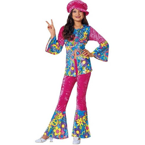 Adult Kid 60 S Hippie Costume Flower Power Disco Costume Ladies
