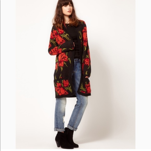 Free People Sweaters Flower Power Black Red Cardigan Poshmark